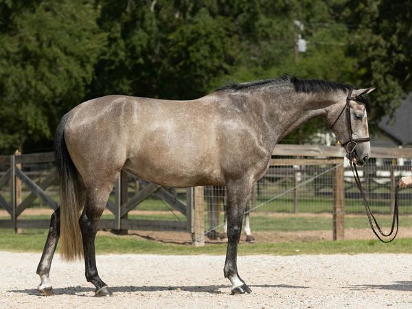 Lady is brave to the jumps and a true joy to ride. Jumps in great form, has the step for the A shows, and three lovely gaits. She was started when imported in April 2025 due to having a foal in Europe. She’s a barn favorite with a wonderful and kind personality. Would thrive in a professional program as she is still green, but is going to make an amazing Amateur/Child horse.